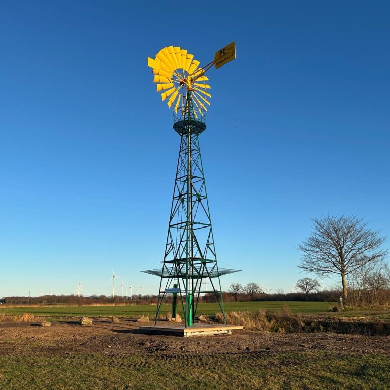 Die Windwasserpumpe ergänzt, bzw. unterstützt das elektrisch betriebene Schöpfwerk in Altenkrempe, Milchstraße 2.
